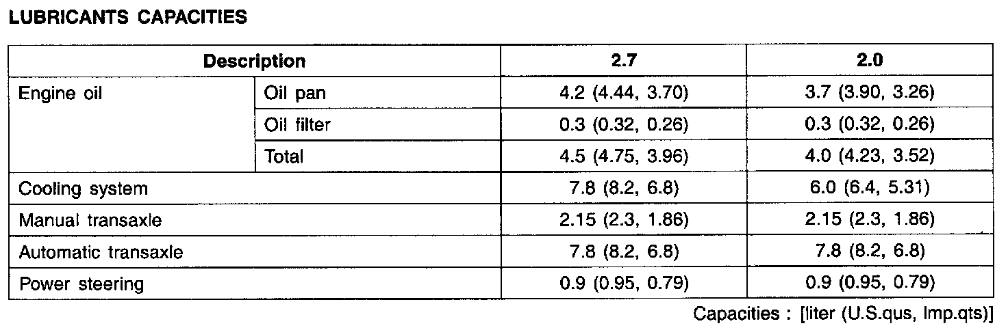 General Capacities Specifications