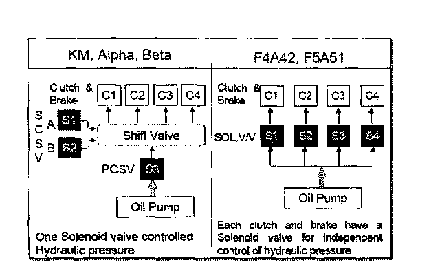 In previous A/T, there were only two solenoid valves to enable shift and one solenoid valve to control hydraulic pressure which resulted inaccurate shift and rough ride.