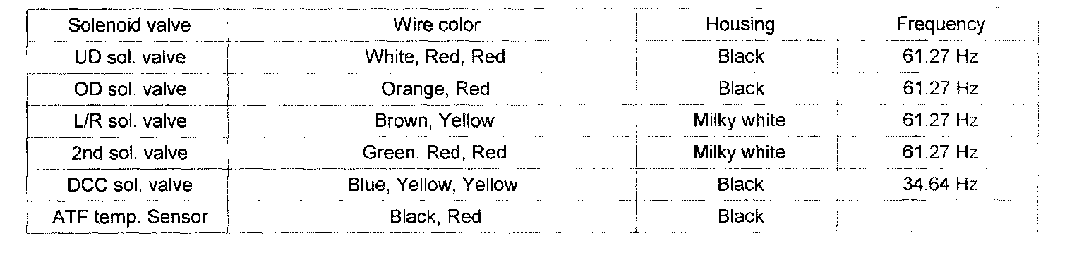 ^ Frequency: LR, 2ND, UD, OD: 61.27 Hz (at the ATF temp. -20°C above)