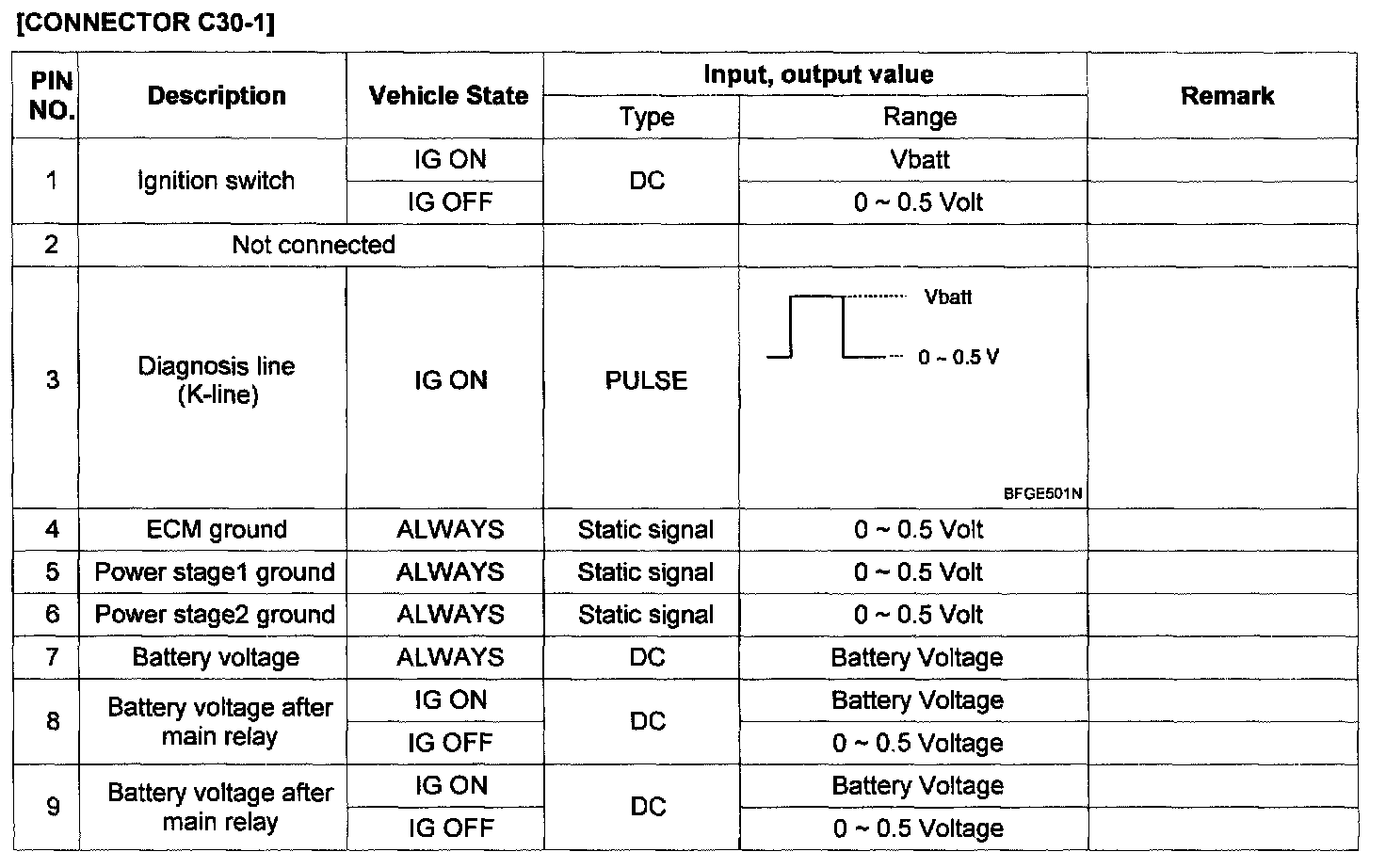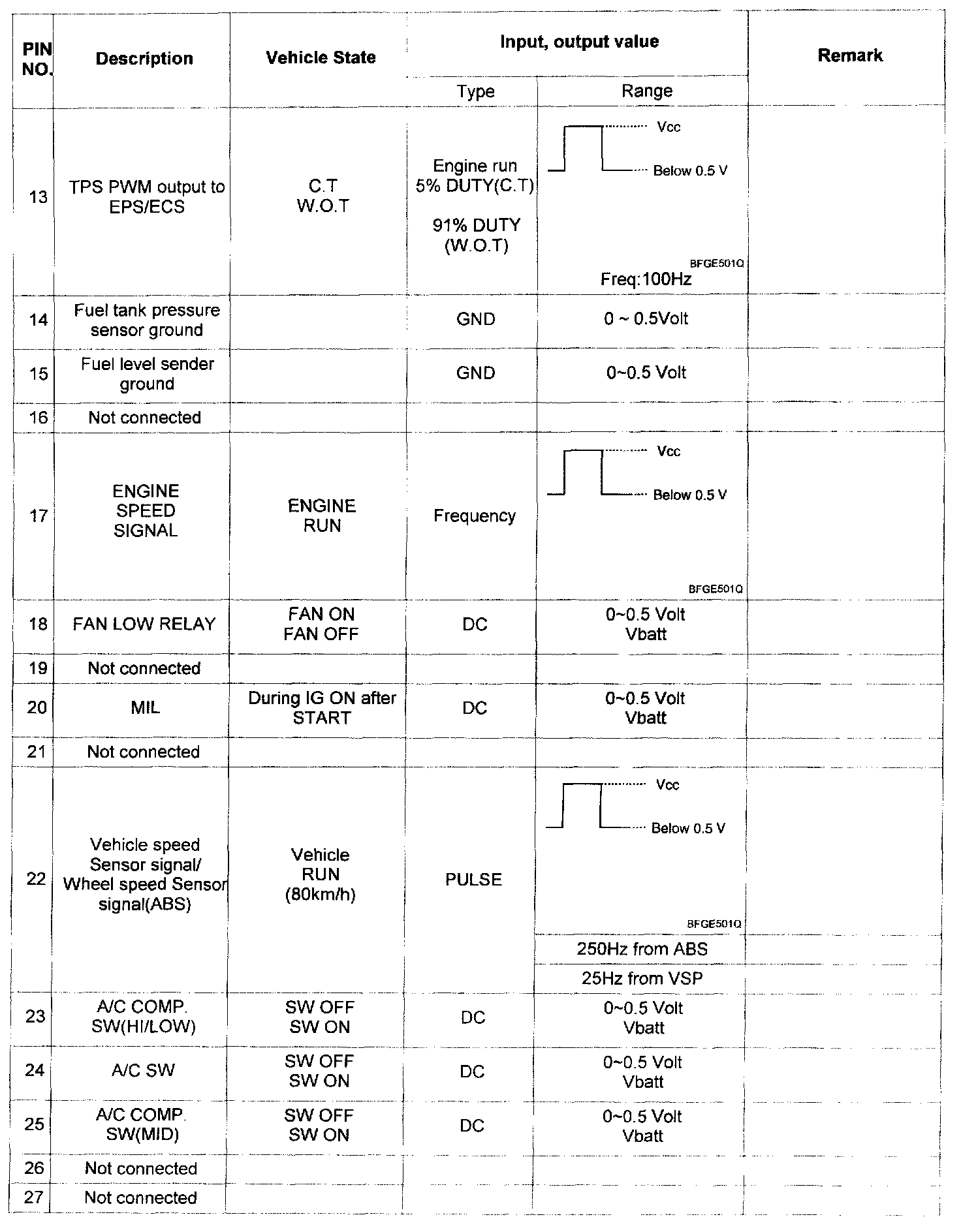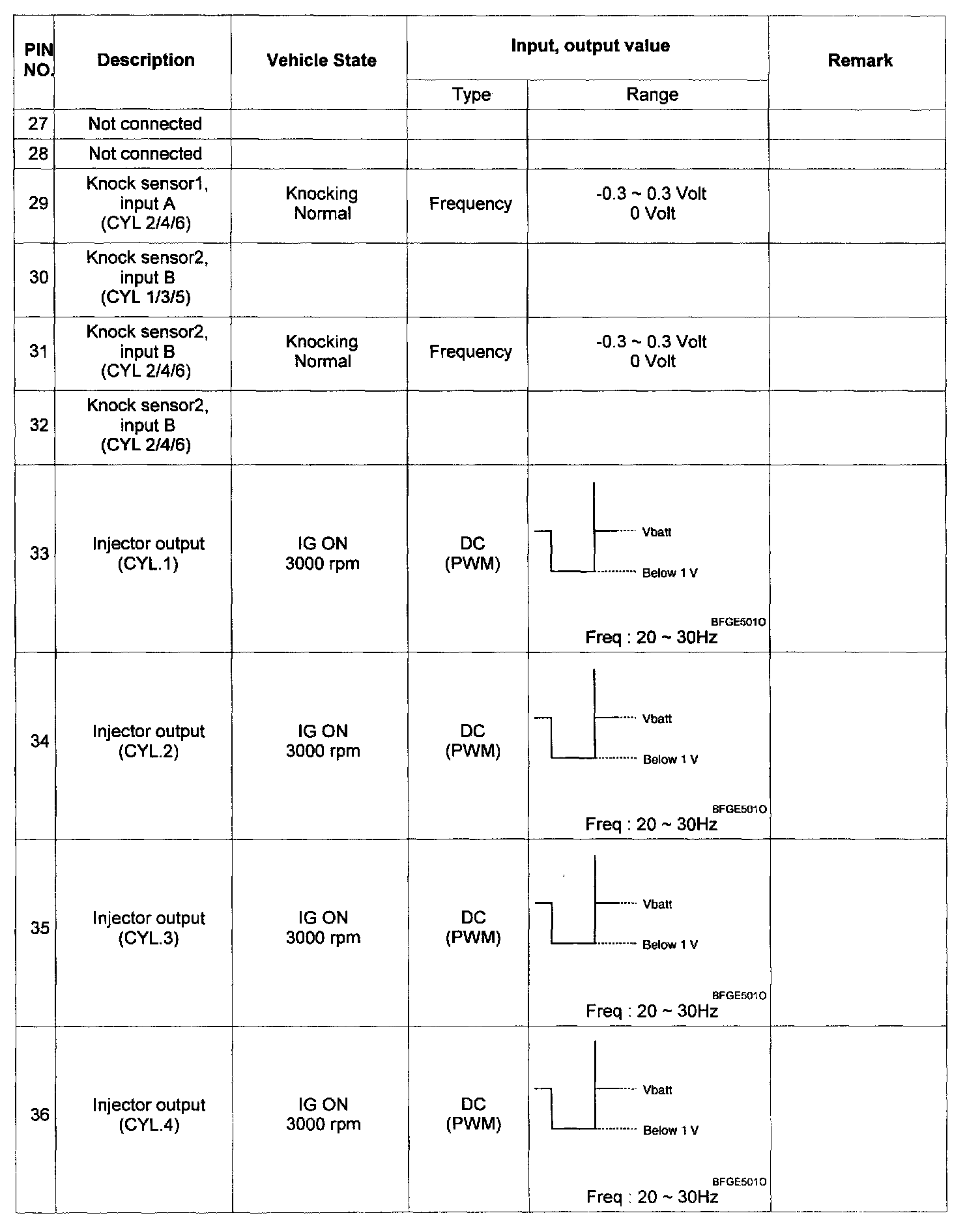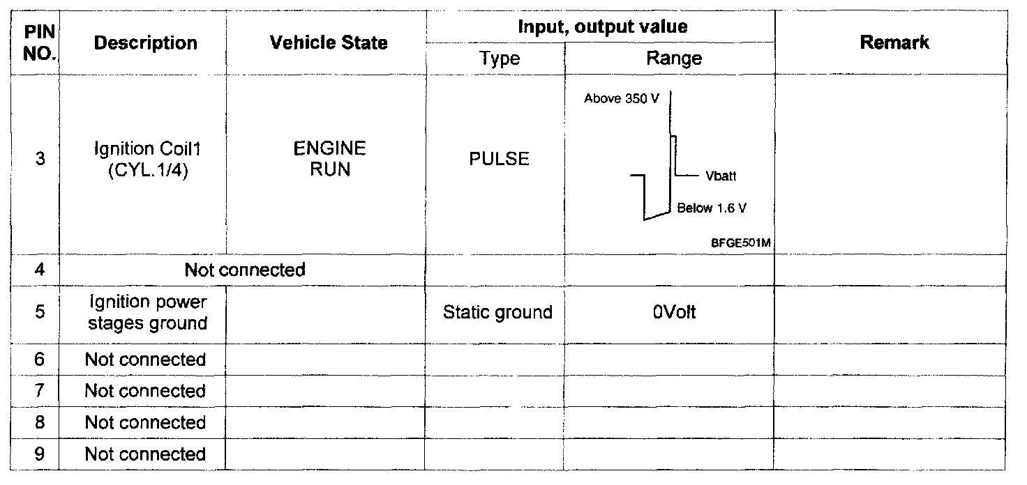 Pinout Values and Diagnostic Parameters
