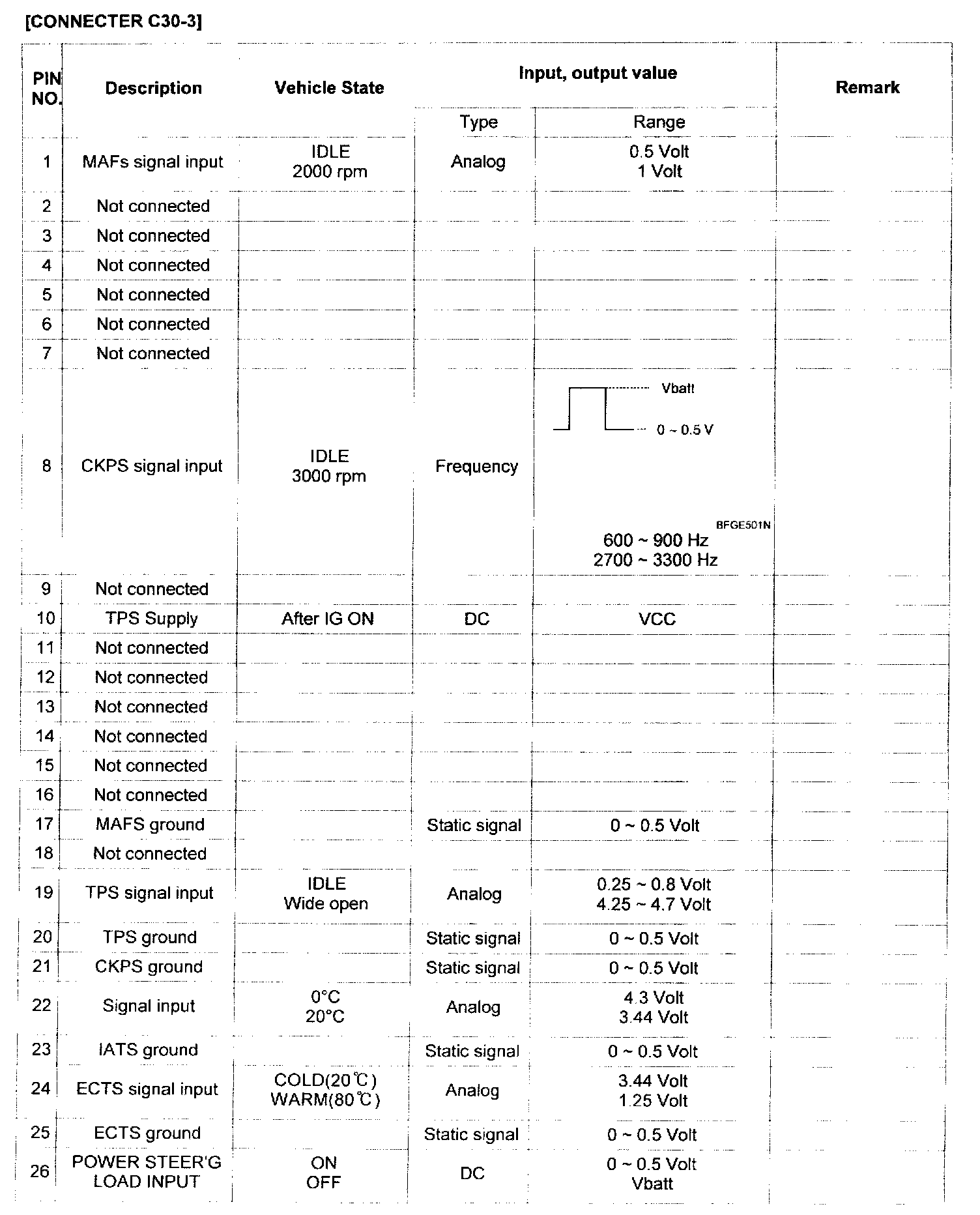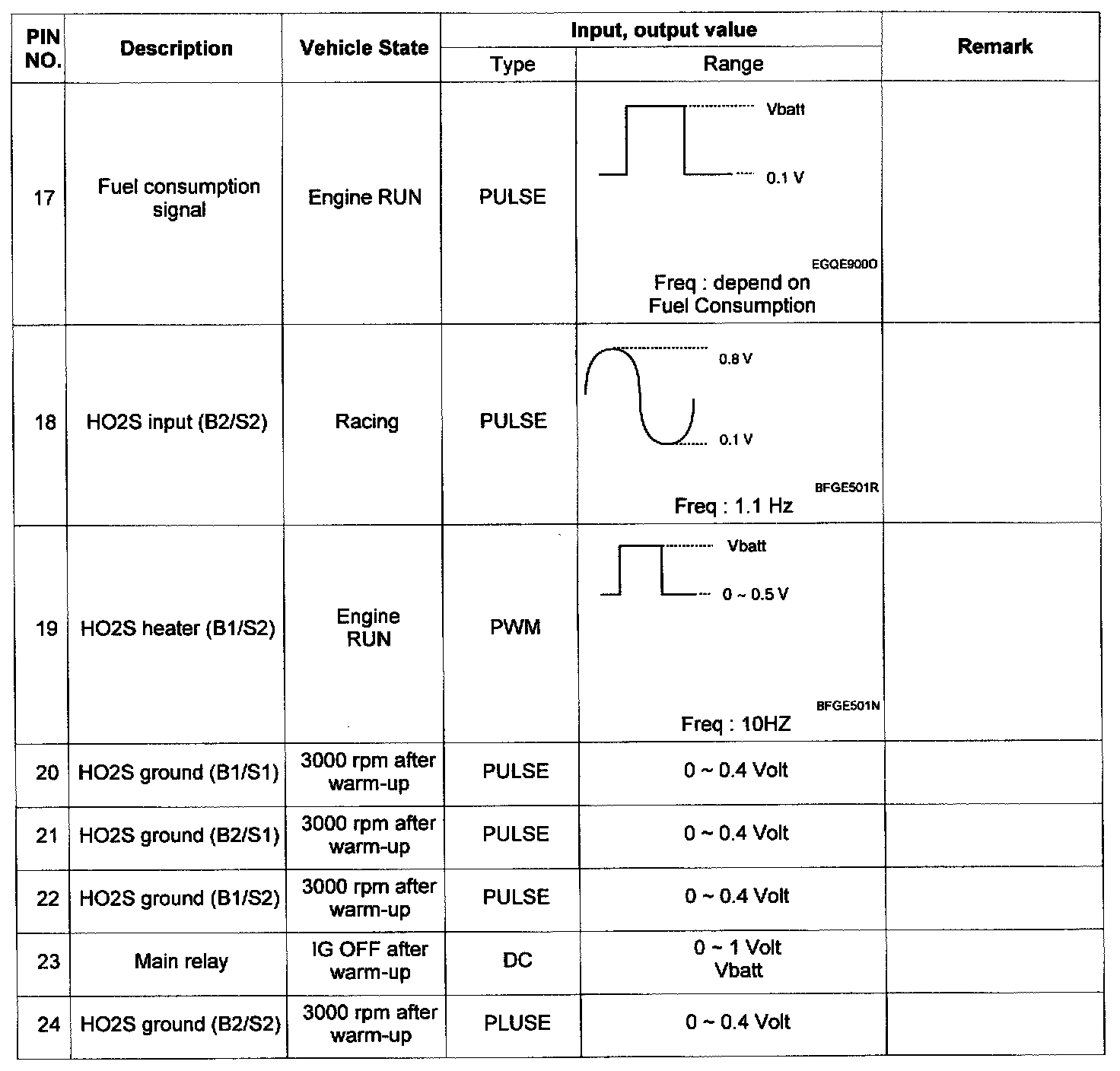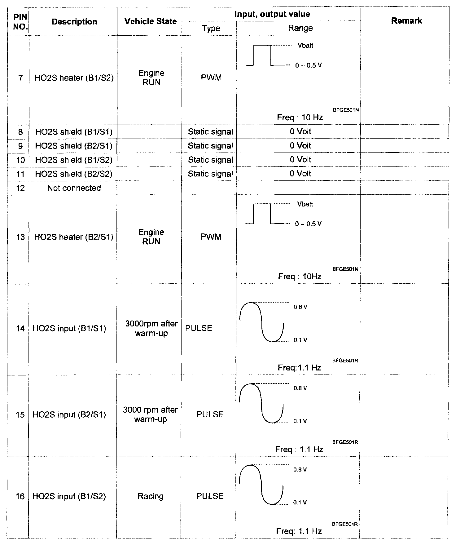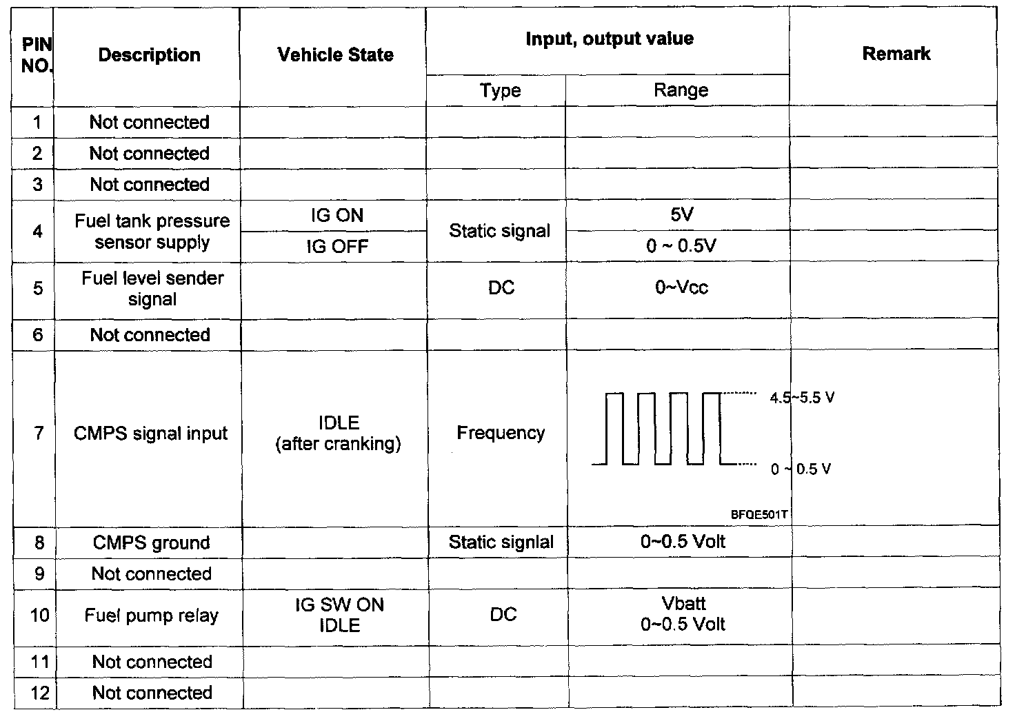 Pinout Values and Diagnostic Parameters