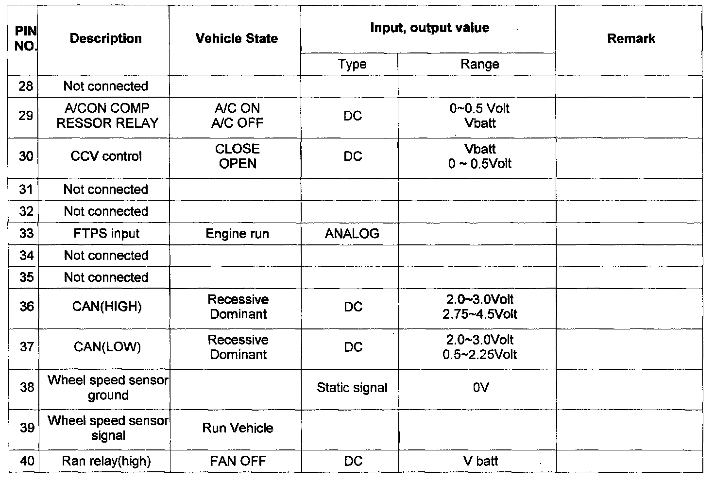 Pin No. 28 - 40: