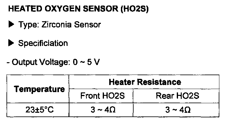 Oxygen Sensor: Specifications