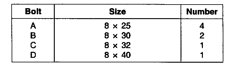 M6 (50 mm) 14 - 16 Nm (140 - 160 kgf-cm, 10 - 12 ft. lbs.)