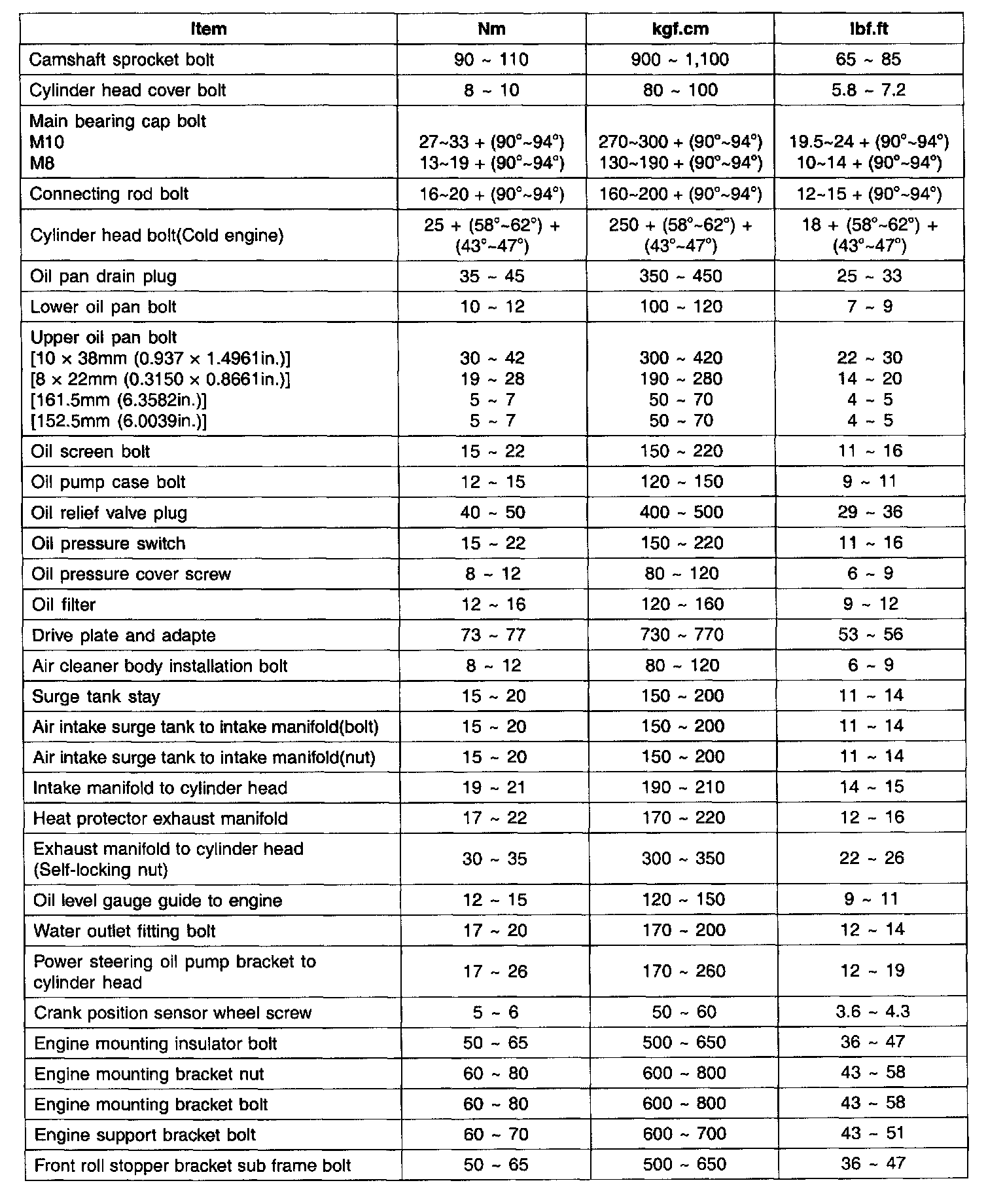 Crankshaft pulley bolt 180 - 190 Nm (1800 - 1900 kgf-cm, 130 - 138 ft. lbs.)