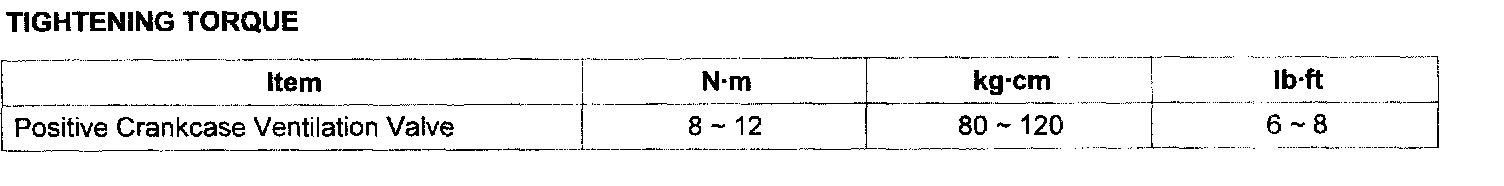 Positive Crankcase Ventilation Valve