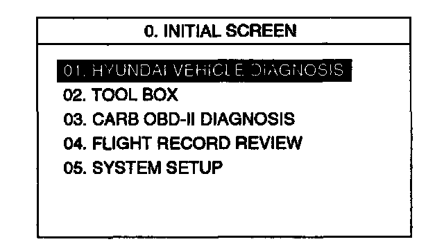 1) Select Hyundai vehicle diagnosis.