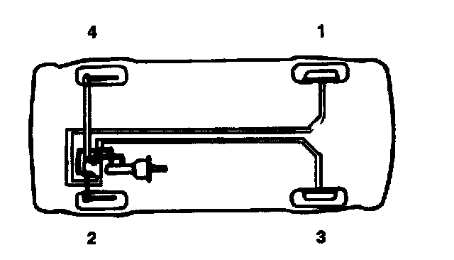 BLEEDING OF BRAKE SYSTEMThis procedure should be followed to ensure adequate bleeding of air and filling of the ABS unit, brake lines and master cylinder with brake fluid.