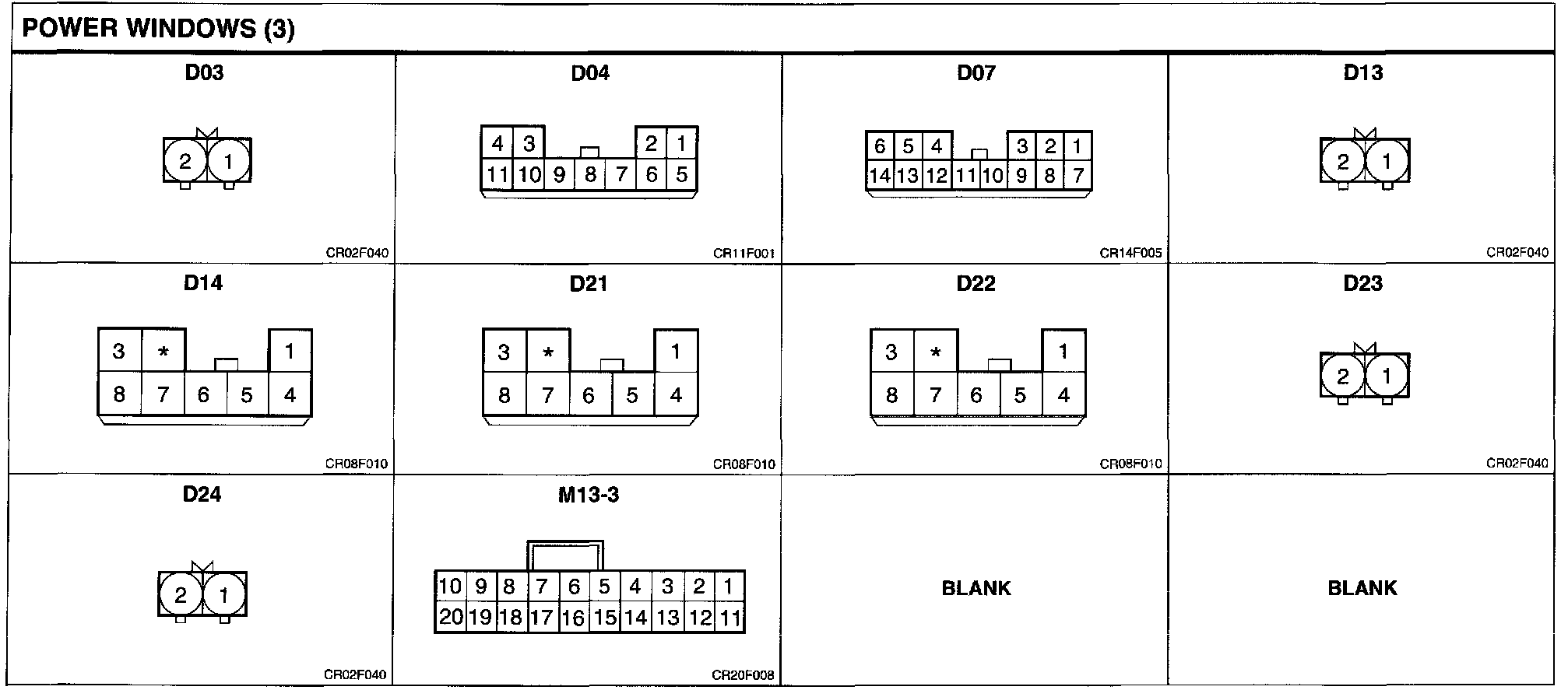 Power Windows Connector Pin Outs: