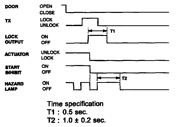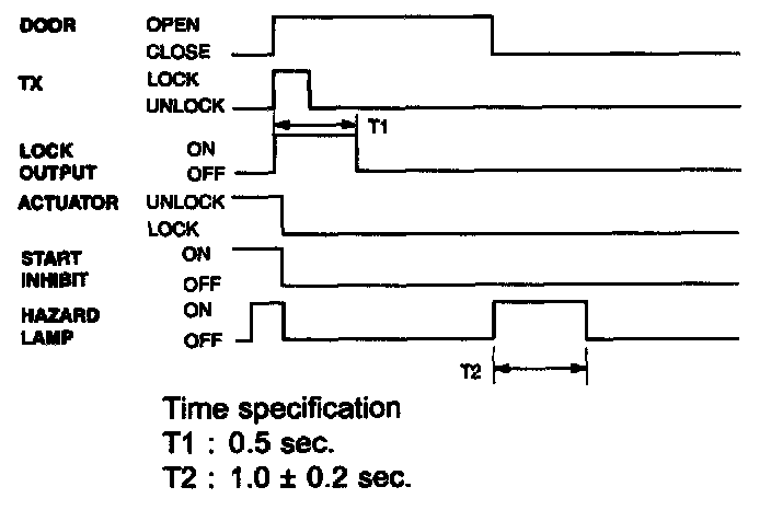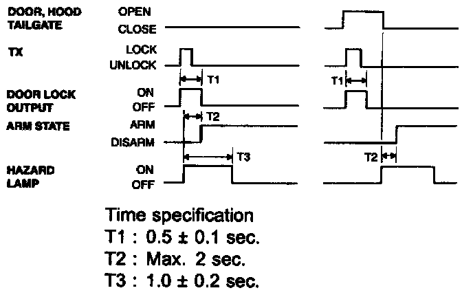 If transmitter(TX) lock signal is received when a door, tailgate or hood is open,then lock output is given and a flash of hazard is not given.