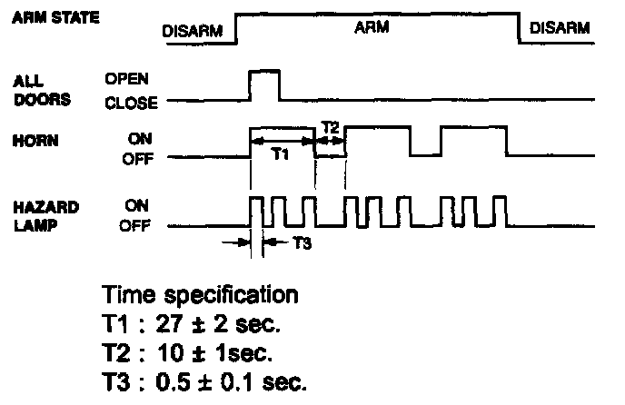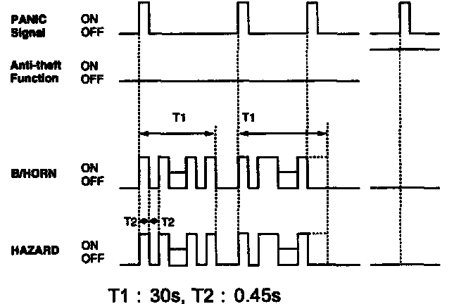 1. If the transmitter's PANIC alarm signal is detected, during T1, using the buggier alarm horn or HAZARD, the PANIC alarm is ON.