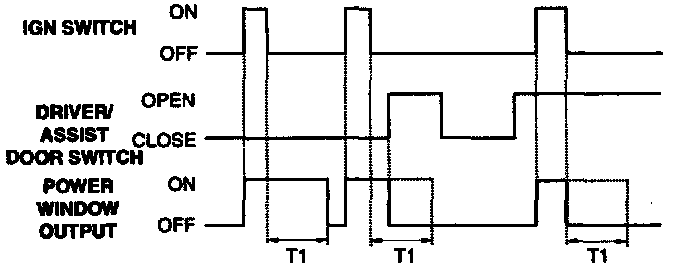 1. When the ignition is switched ON, the power window relay output is turned ON.