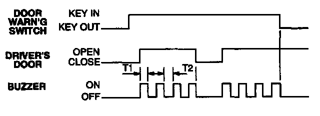 1. If the key is in the ignition key cylinder and the driver's door is opened, the buzzer sounds continually (period:0.9 seconds Duty rate:50%).