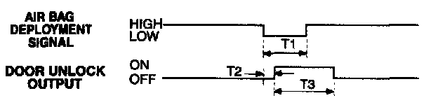 1. With the ignition turned ON, if the air bag is deployed, a crash signal is received and send an UNLOCK output to all doors UNLOCK.