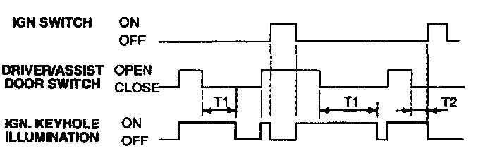 - In case the driver's door key UNLOCK switch is ON again during T1, the 4 door UNLOCK relay is ON for T3.