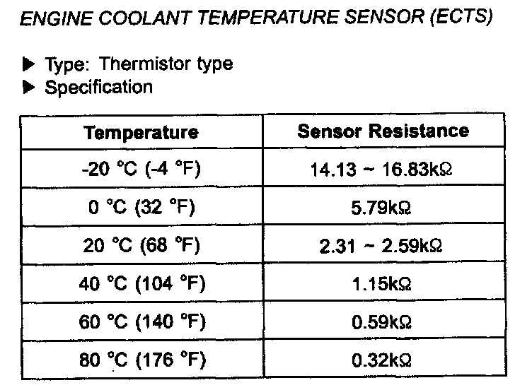Coolant Temperature Sensor/Switch (For Computer): Specifications