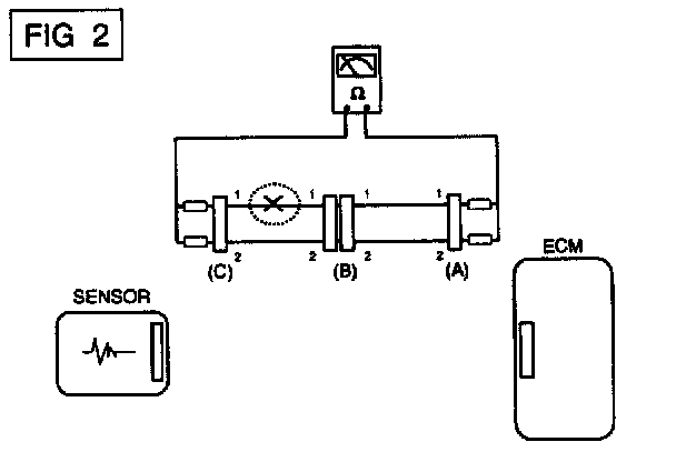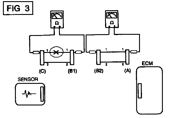 If an open circuit occurs (as seen in [FIG. 1)), it can be found by performing Step 2 (Continuity Check Method) or Step 3 (Voltage Check Method) as shown below.