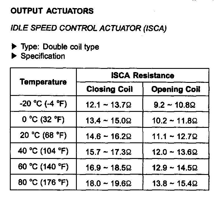 Idle Speed/Throttle Actuator - Electronic: Specifications