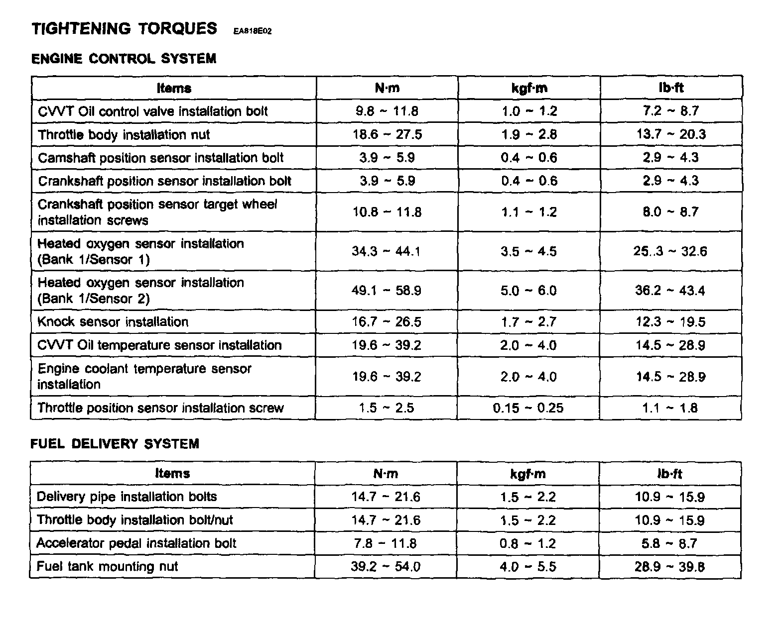 Tightening Torques: