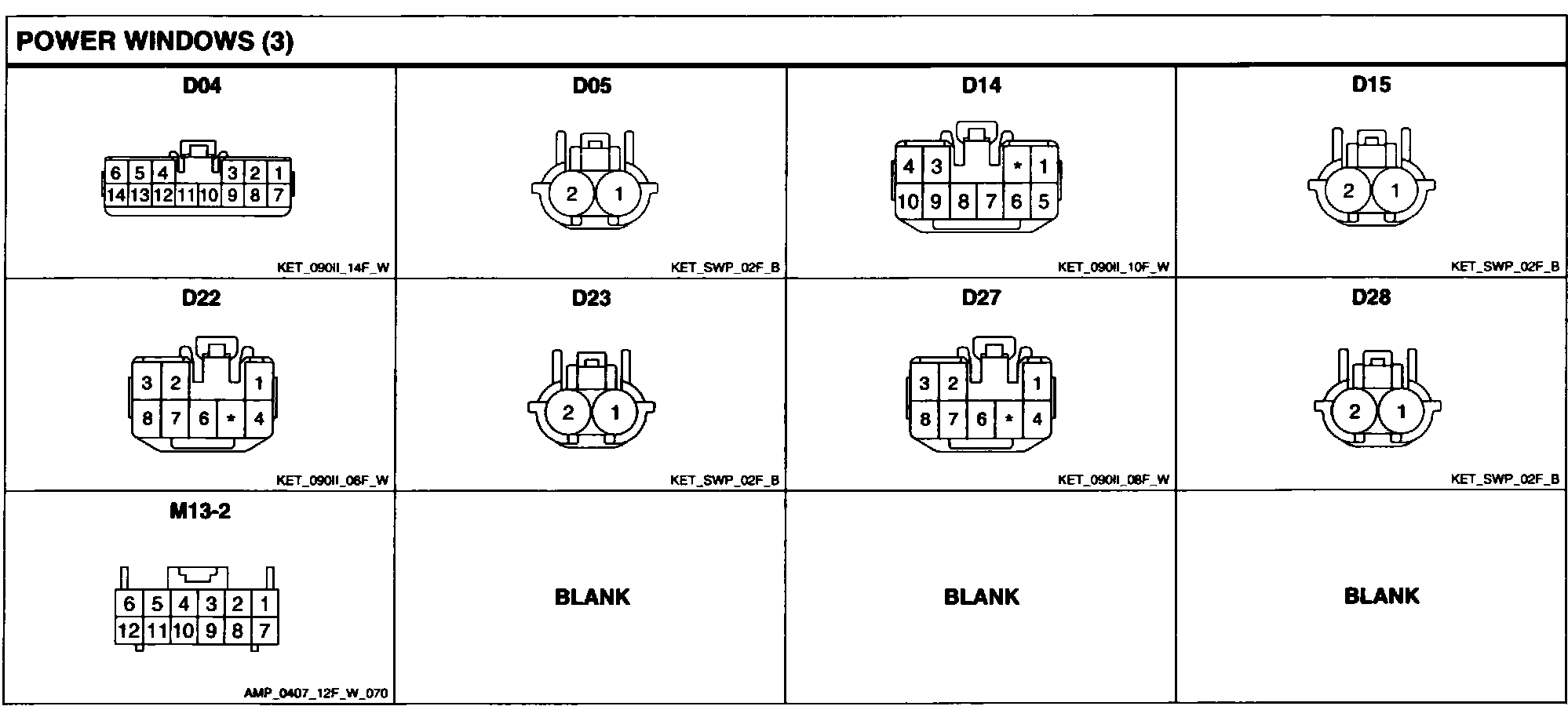 Power Windows Connector Pin Outs: