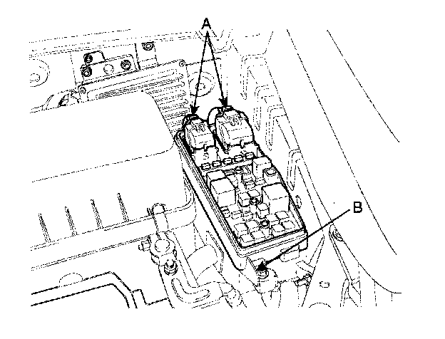 3. Remove the 2 FAM connectors (A) and battery terminal nut (B).