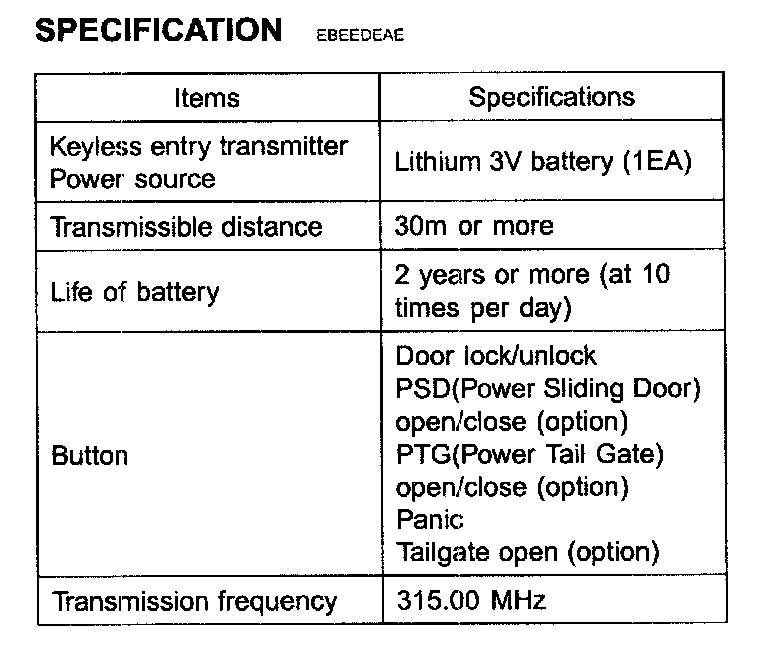 Keyless Entry Transmitter: Specifications