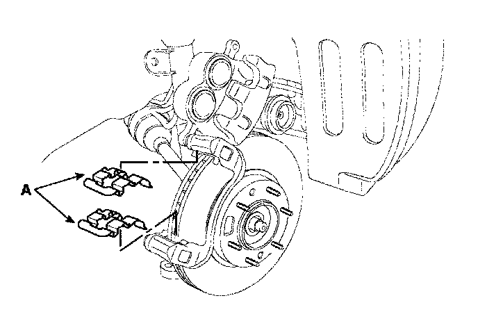 1. Install the pad retainers (A) on the caliper carrier.