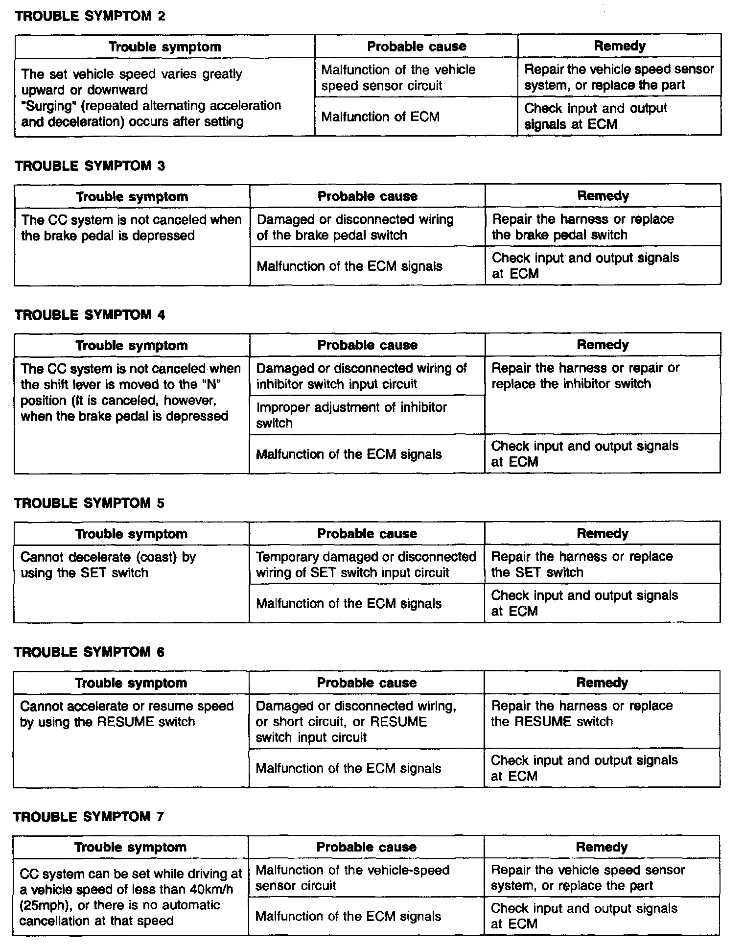 Trouble Symptom Charts (Part 1):