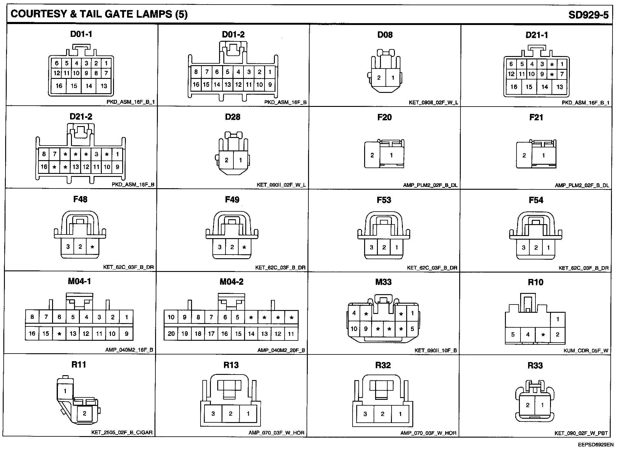 Courtesy & Tail Gate Lamps Connector Pin Outs: