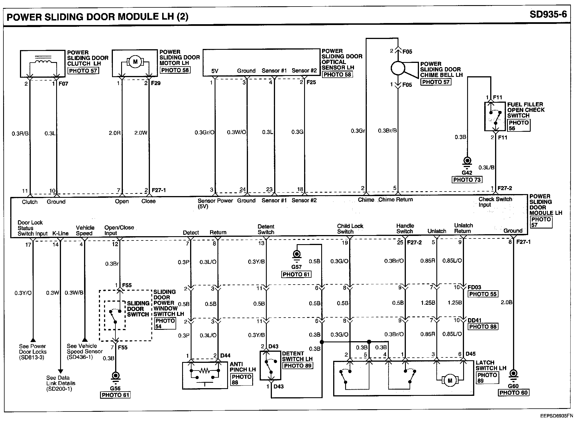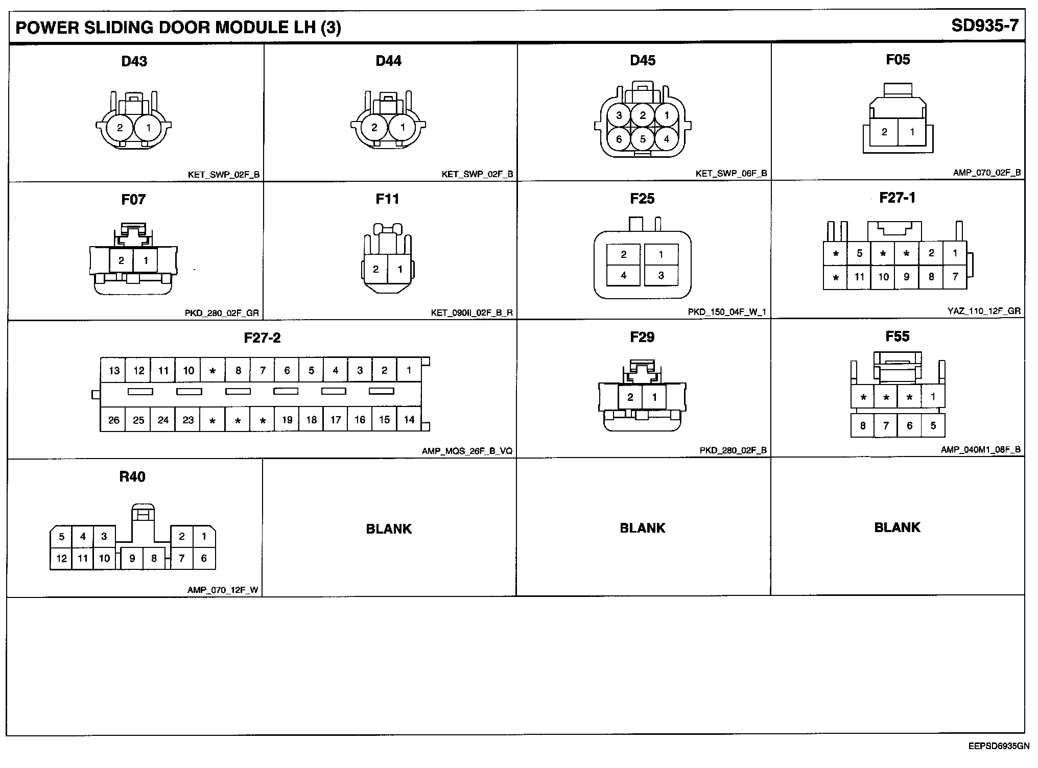Power Sliding Door Module LH Connector Pin Outs: