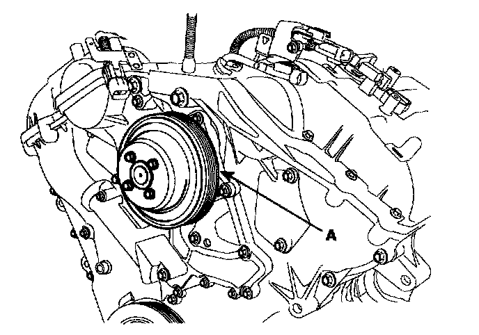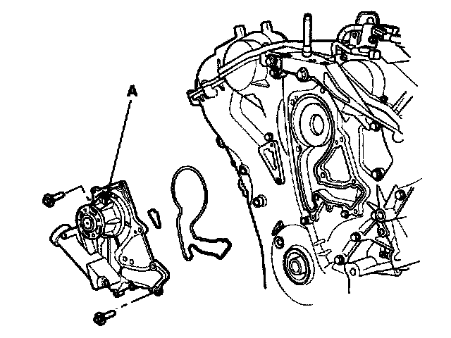 4. Remove the water pump(A) and gasket.