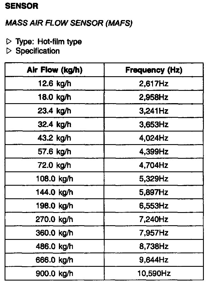 Mass Air Flow Sensor(MAFS) - Specification: