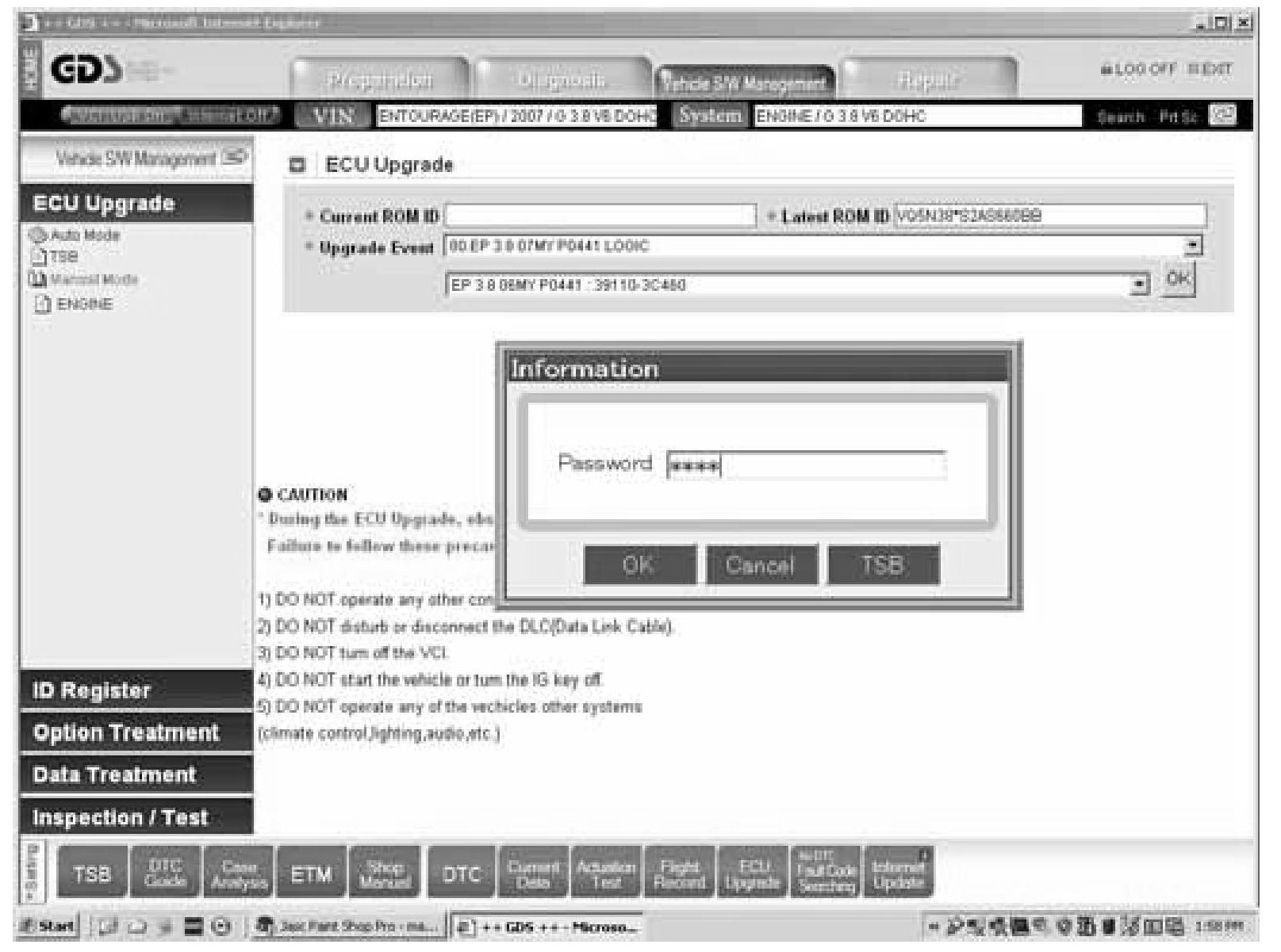 3. Next enter the appropriate password from the table and hit OK in the ECU Upgrade screen.