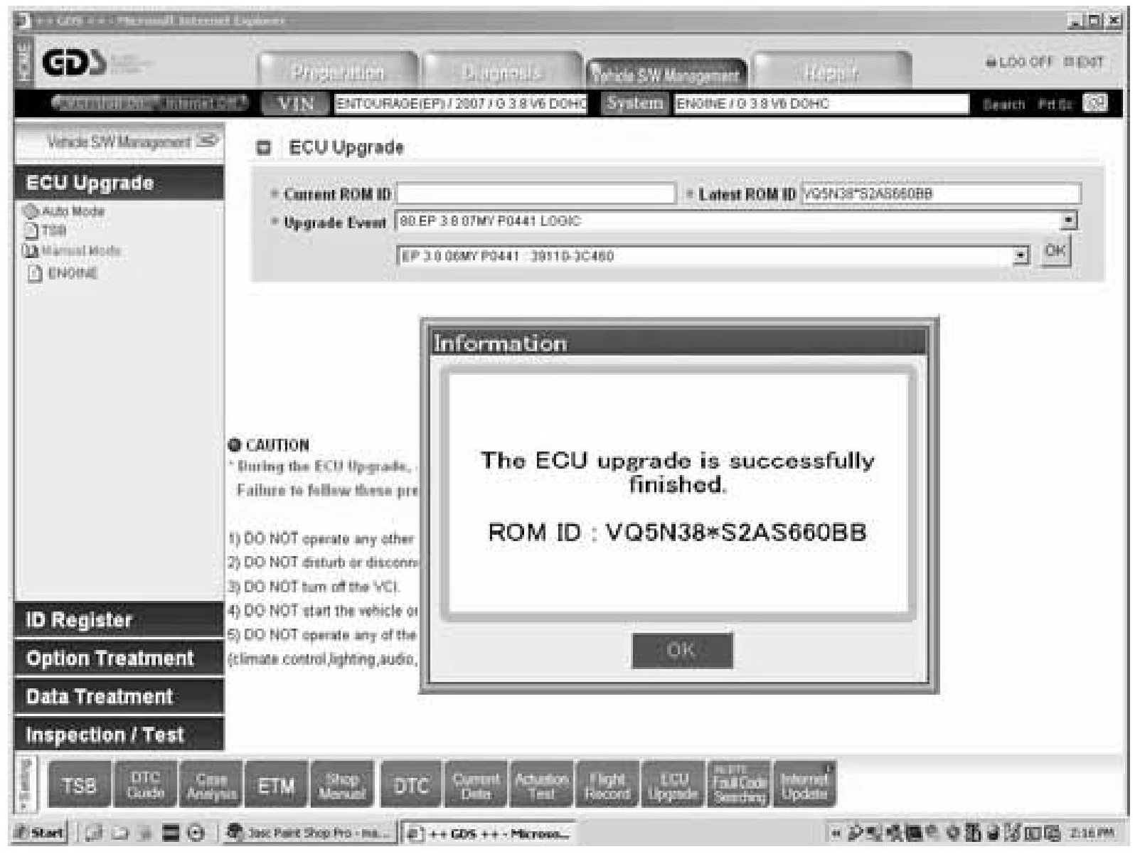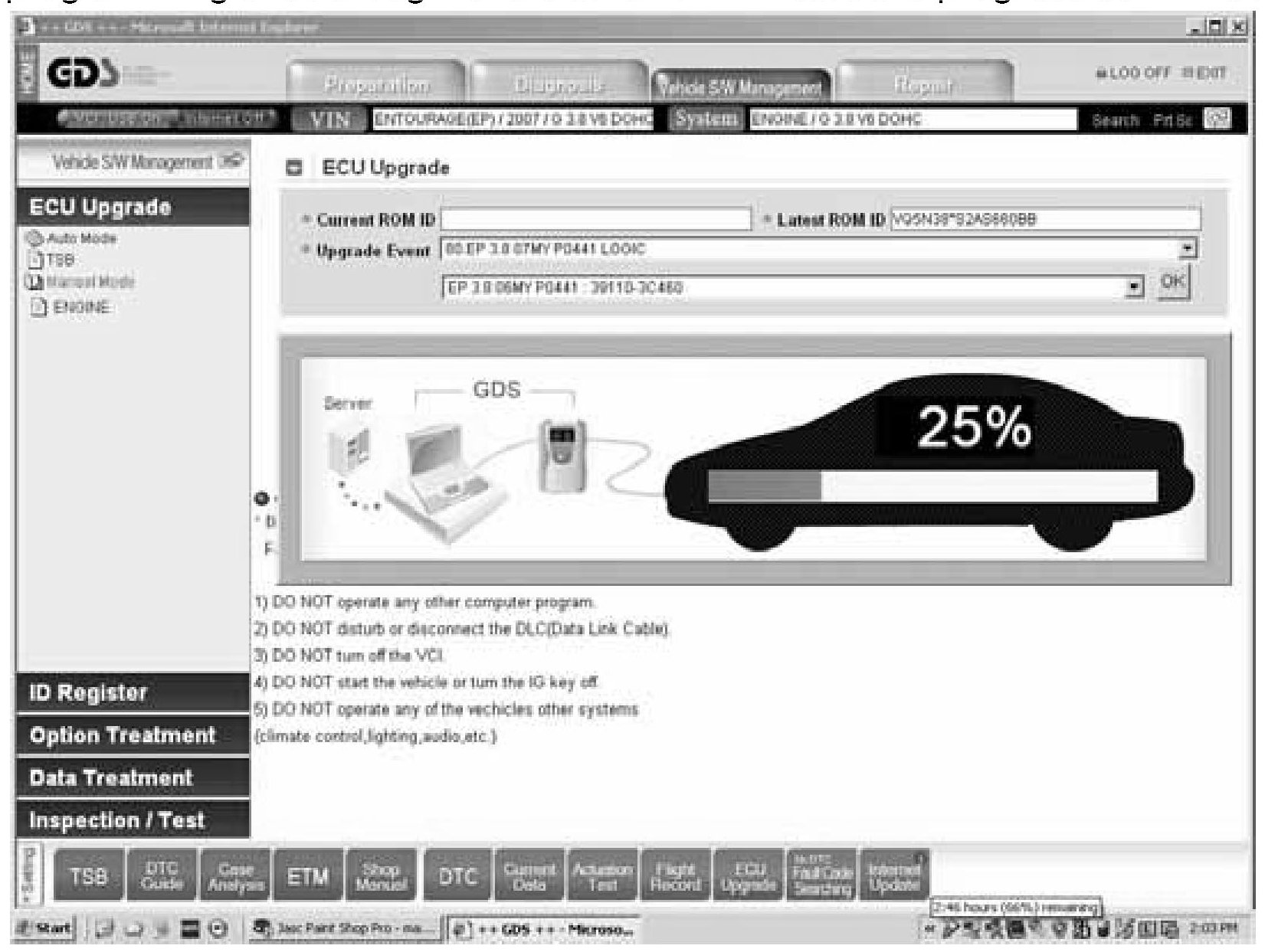 8. The following screen occurs as GDS is reading the present ECU ROM ID: