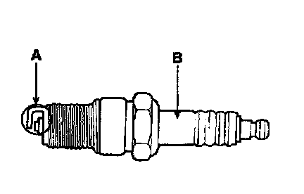4. Inspect the electrodes (A) and ceramic insulator (B).