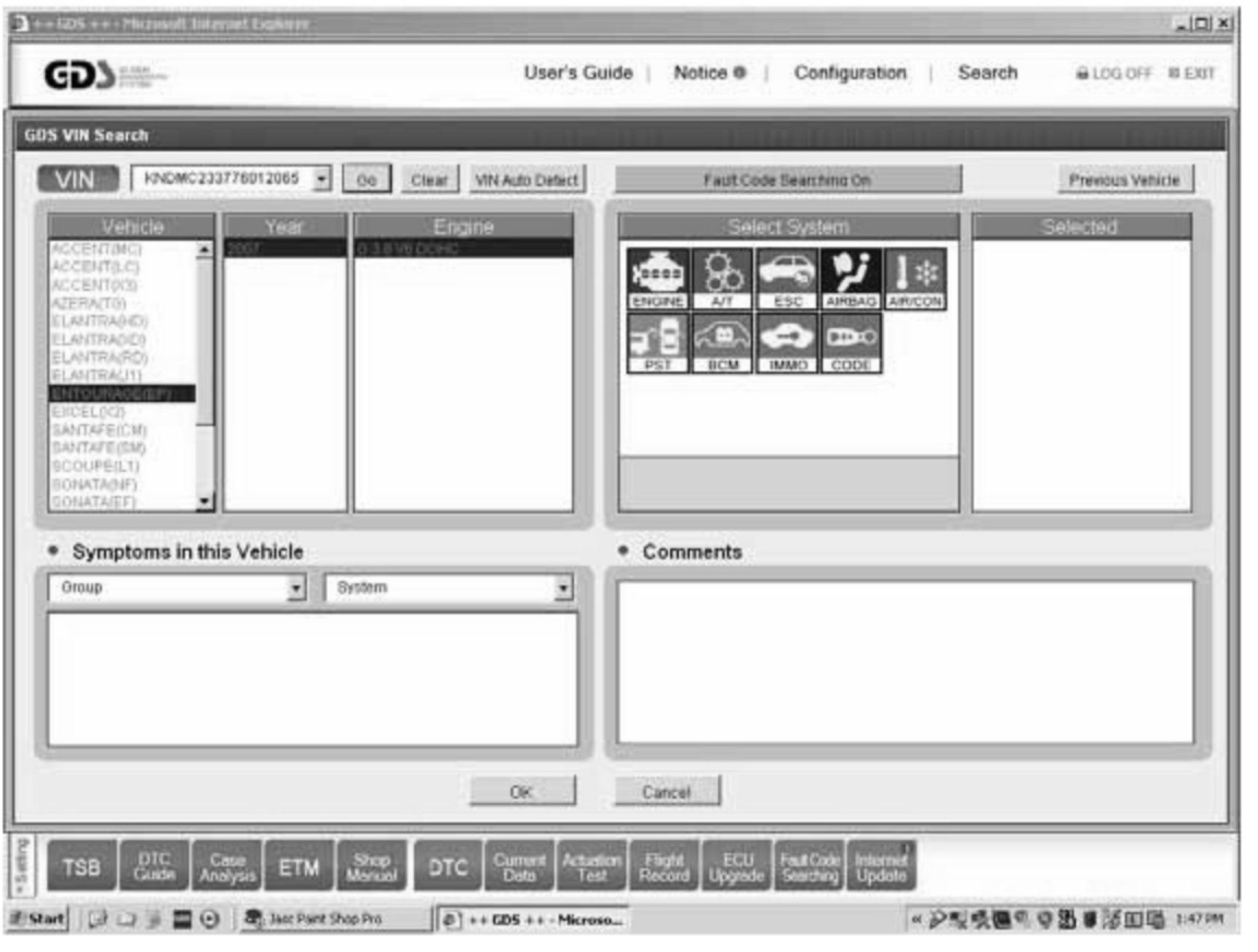 You must have an internet connection to GDS to be able to receive any updated data; the bright blue internet On should illuminate to the left of the VIN button.