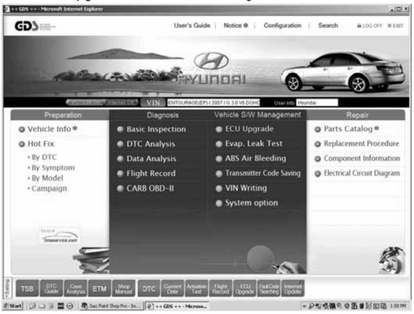 1. Connect the GDS VCI module to the vehicle's DLC connector and the USB cable between the VCI and GDS laptop's USB port.