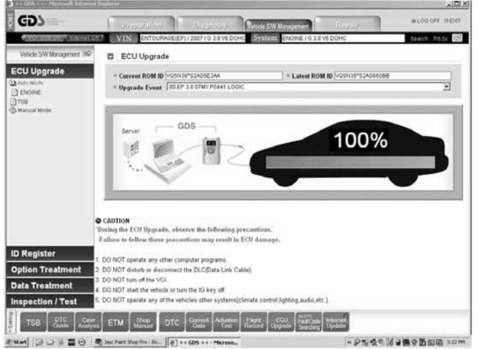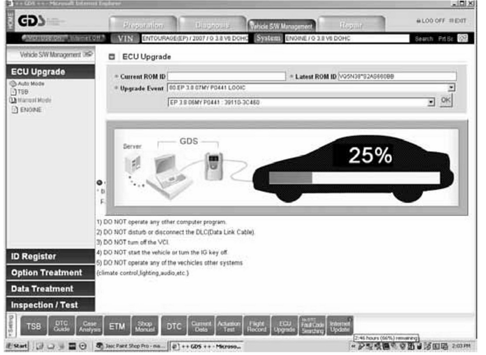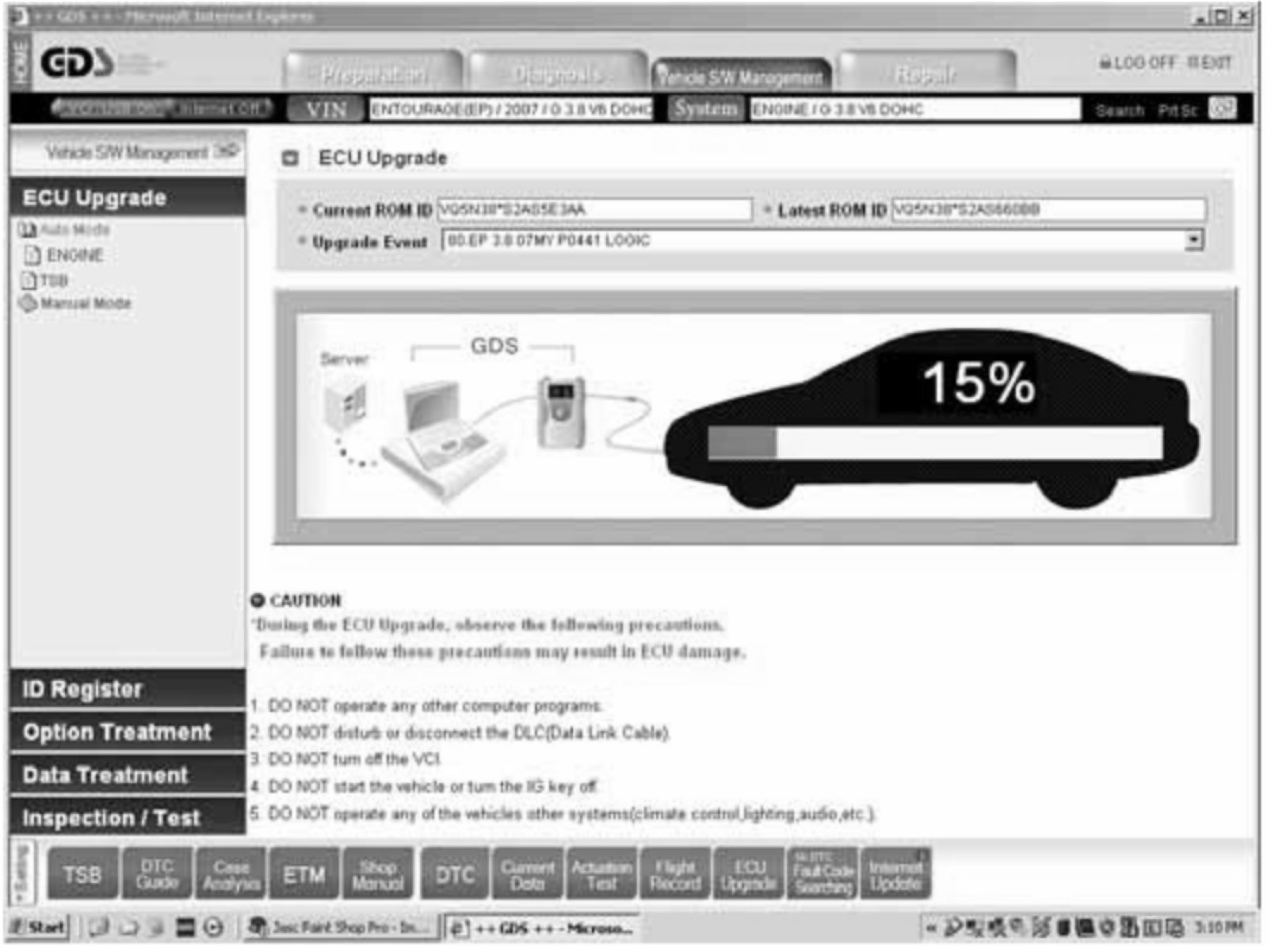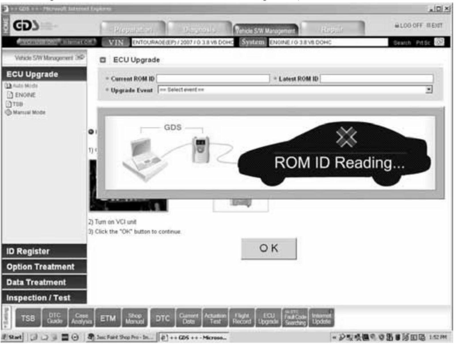 8. The following screen occurs as GDS is reading the present ECU ROM ID: