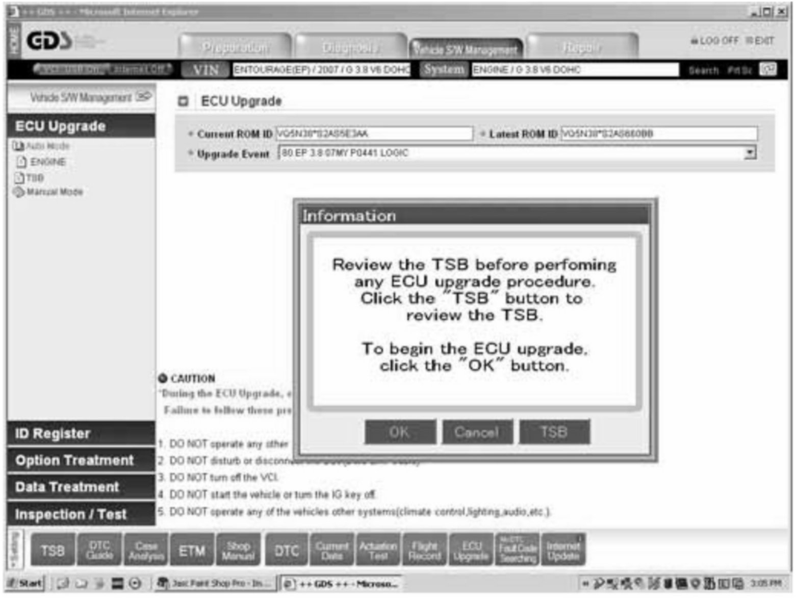 11. Select OK to confirm you are correctly following these TSB instructions: