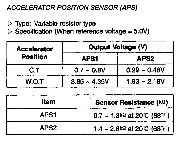Accelerator Position Sensor (APS) - Specification: