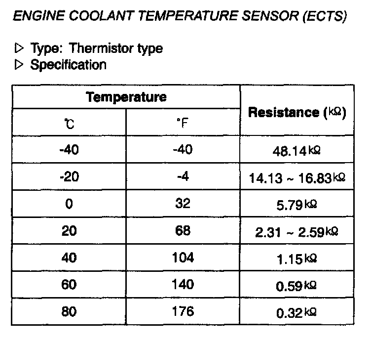 Engine Coolent Temperature Sensor (ECTS) - Specification: