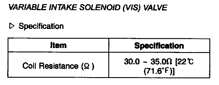 Variable Intake Solenoid (VIS) Valve - Specification: