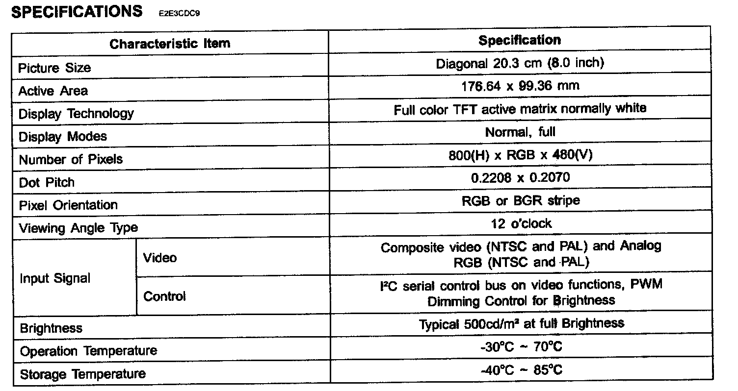RSE(Rear Seat Entertainment) System - Specifications: