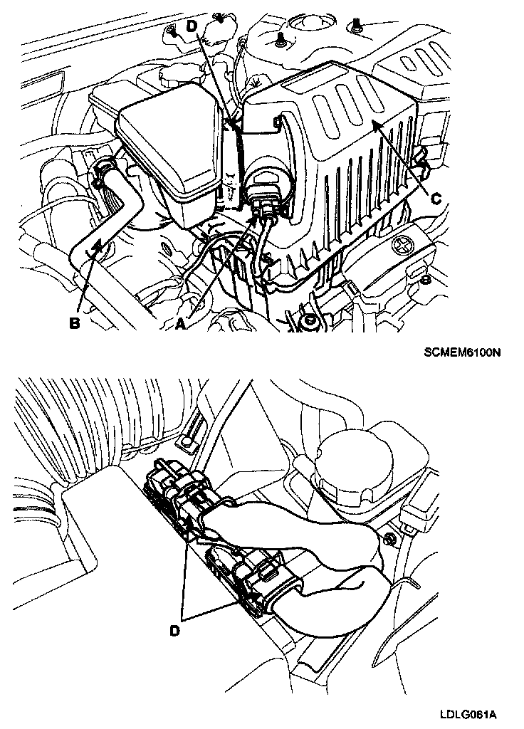 4) Disconnect the PCM connectors(D).