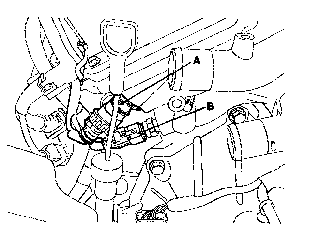 7) Disconnect the bank 2 CMP sensor connector(A) and the ECT(Engine Coolant Temperature) sensor connector(B).