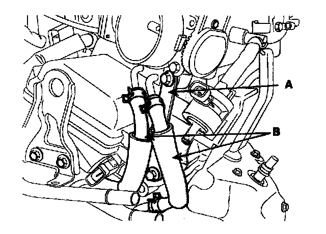 5. Remove the ETC(Electric Throttle Control) bracket(A) and the cooling hoses(B).