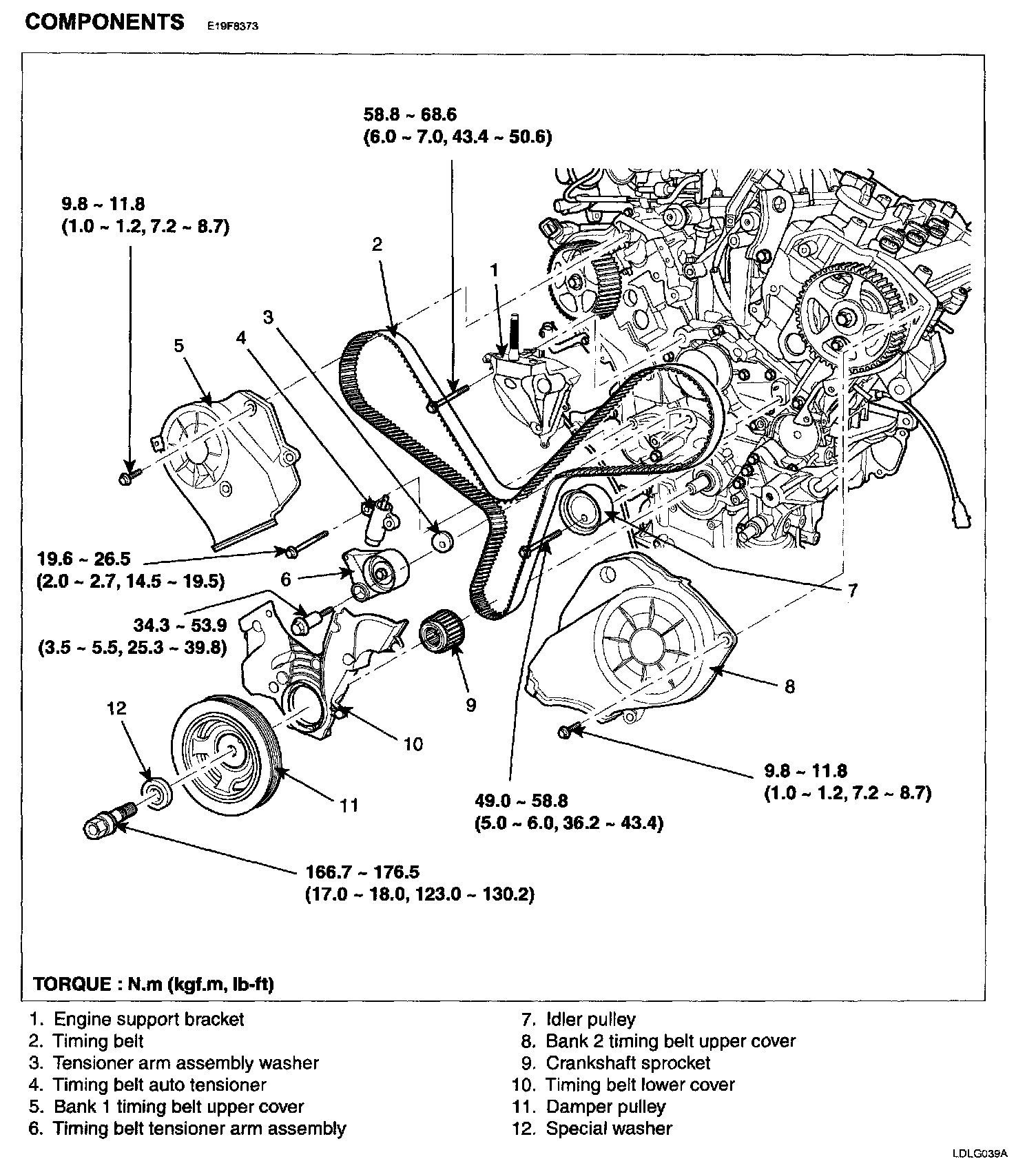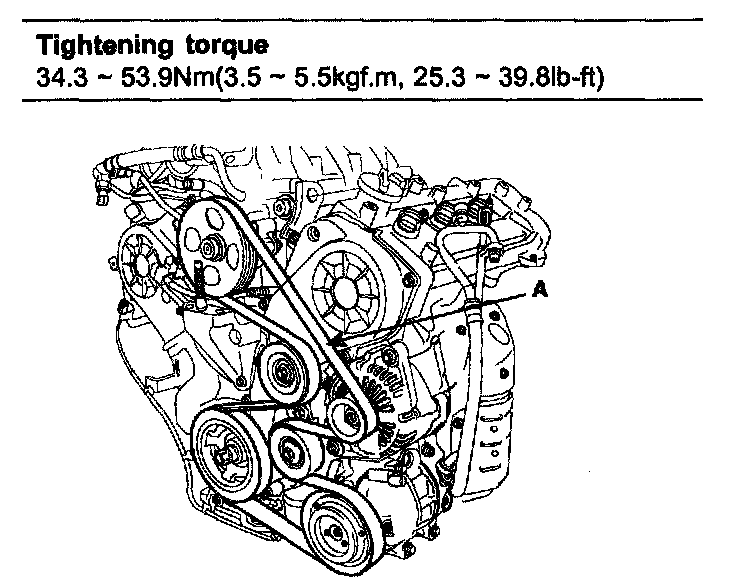 Tightening torque 34.3-53.9Nm (3.5-5.5kgf.m, 25.3-39.8 lb-ft)