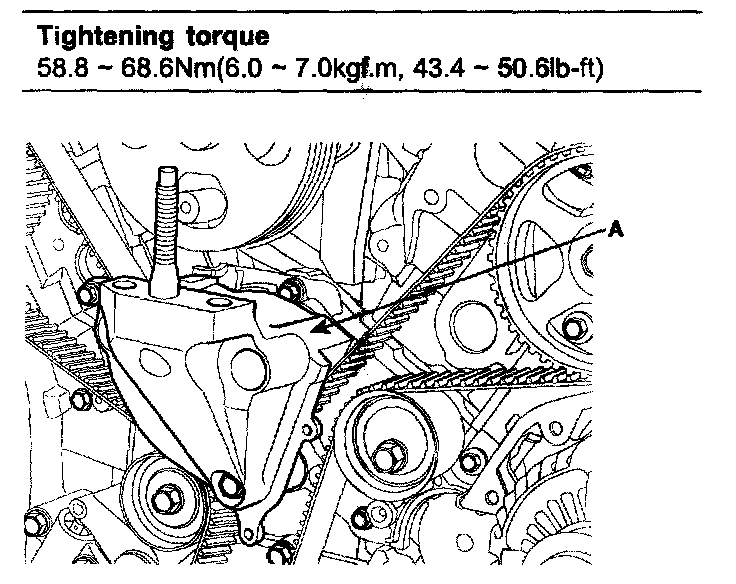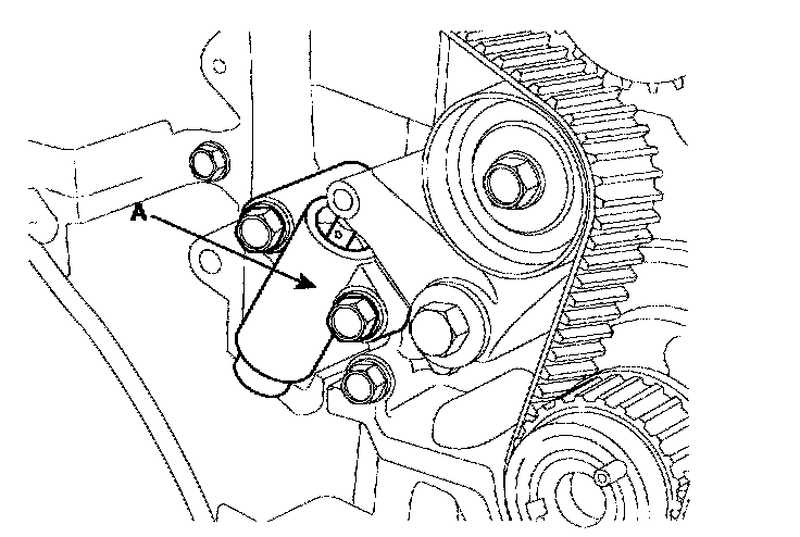11. Remove the timing belt auto tensioner(A).