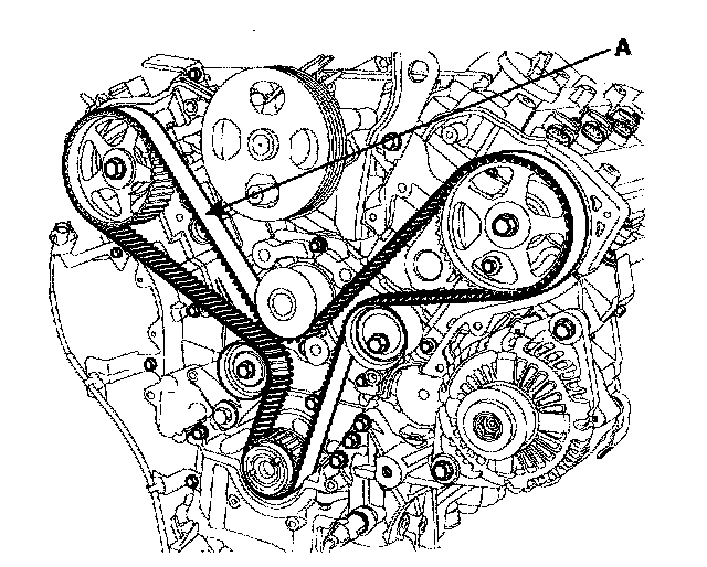 12. Remove the timing belt(A).