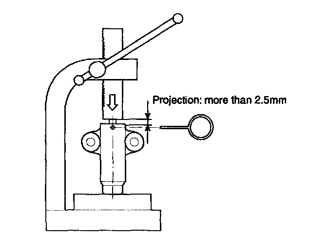 ^ Do not press the rod until its position is below 2.5mm from the body surface.